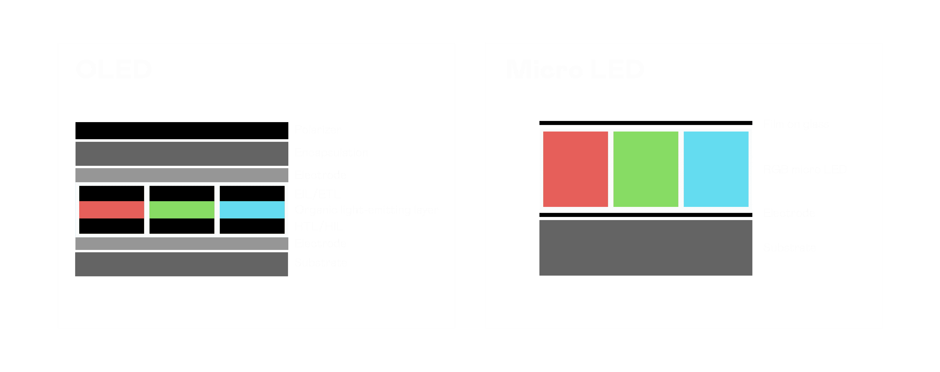 以 LED 做为显示画素,,可让 LED 的发光效率发挥到极致,,从而让显示器具备优异的亮度表现,,,,不论是在户外或室内,,均具备出众的显示效果。。同时,,,,与使用有机材料的 OLED 相比,,,,LED 具备更稳定、、、寿命更长的特性,,不仅不会有画面烙印问题,,而且更不容易出现故障、、坏点。。