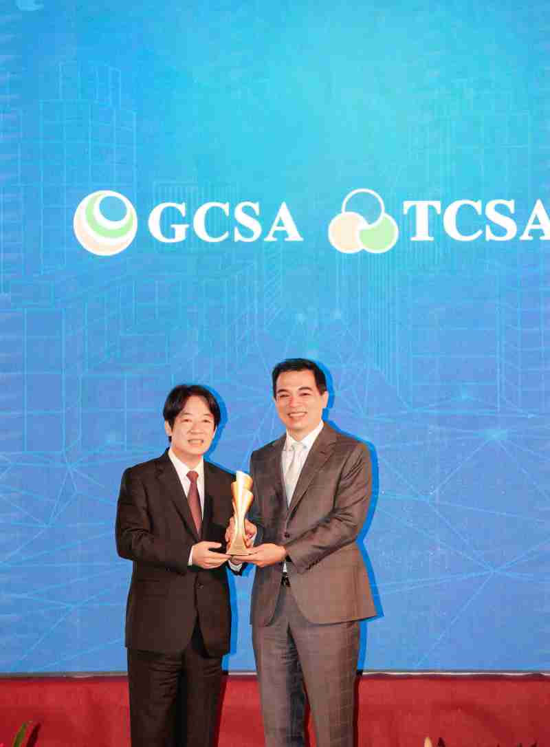 达全方位永续表现获全球永续奖及台湾永续奖肯定,,由副总统赖清德颁奖 (左),,,,www.z6.com总经理柯富仁 (右) 代表领奖
